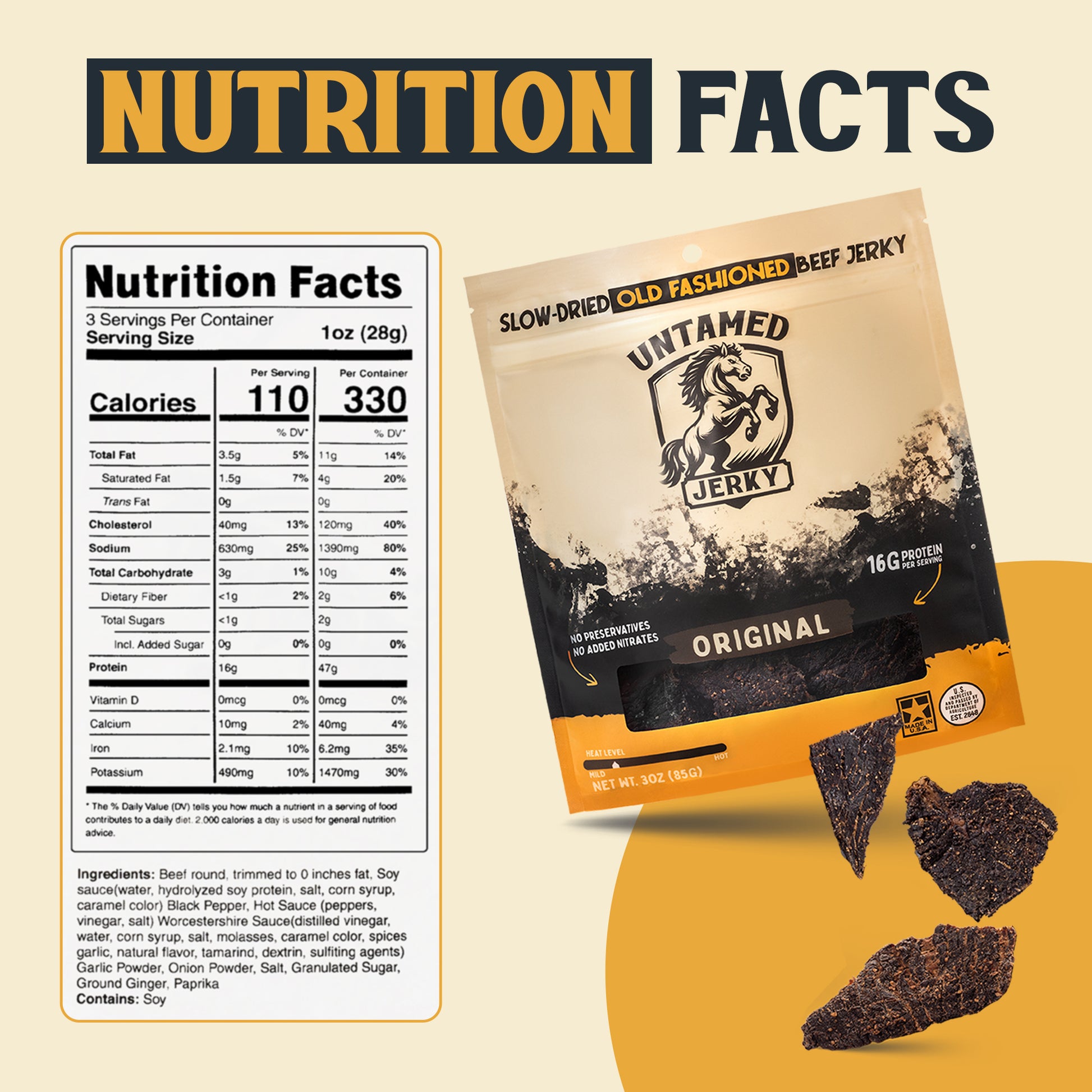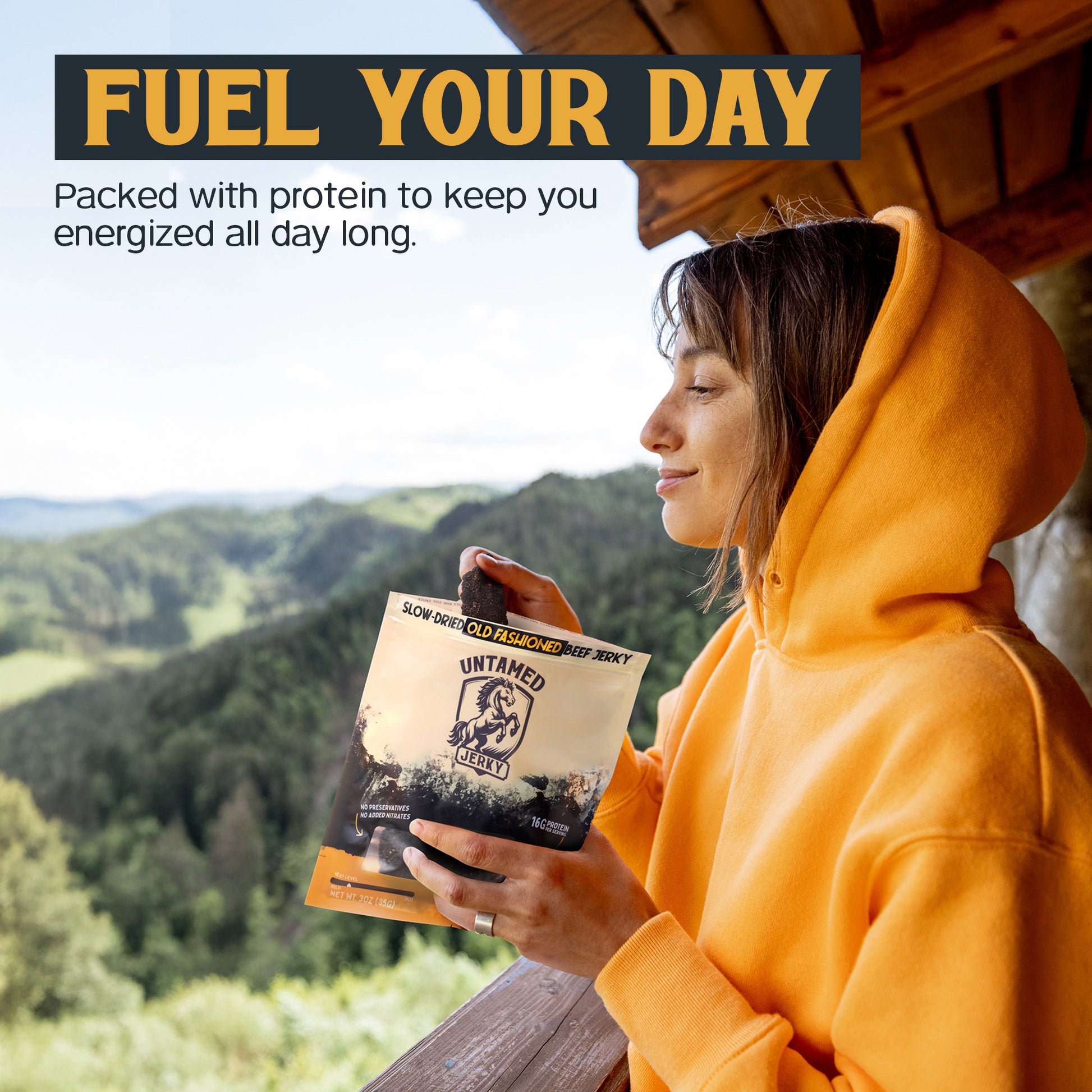 Sink your teeth into Untamed Jerky’s Old-Fashioned Original Jerky, crafted the way jerky should be—dry, tough, and packed with honest flavor. Made from premium beef in small batches, this jerky delivers a bold, smoky taste with a mild spice kick, free from artificial additives, preservatives, nitrites, or MSG. Slow-dried for that authentic chew, it’s a hearty, protein-packed snack for those who crave real, untamed beef jerky, not gas station mush.